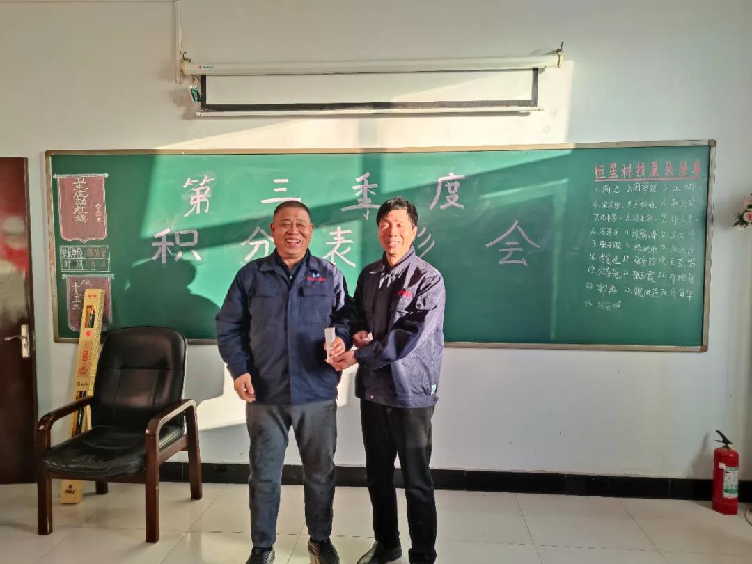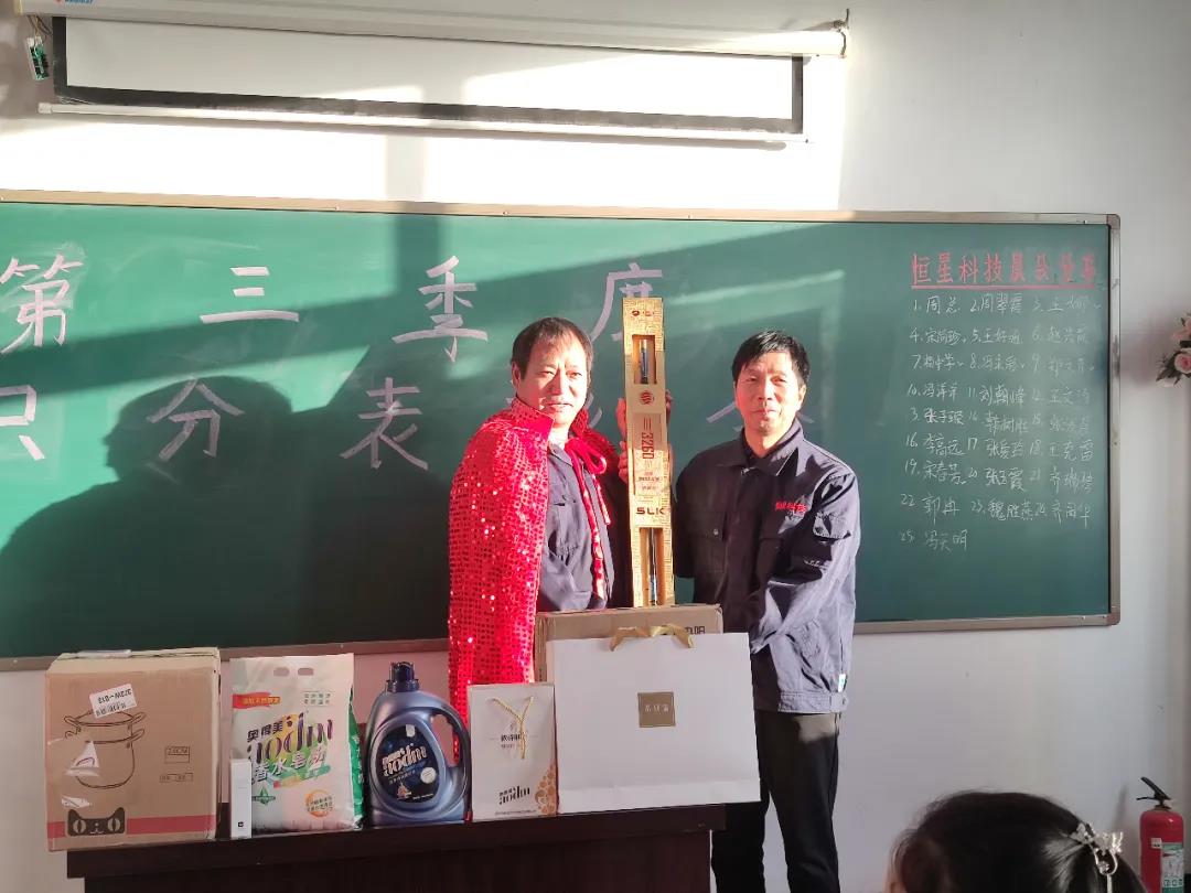 頒發的是本季度積分榮獲第一名的優秀員工,也就是本季度的積分王,他就是楊中學,以熱烈掌聲歡迎積分王上臺,由周忠太總經理頒發第一名的獎品,獲獎人員發表獲獎感言。